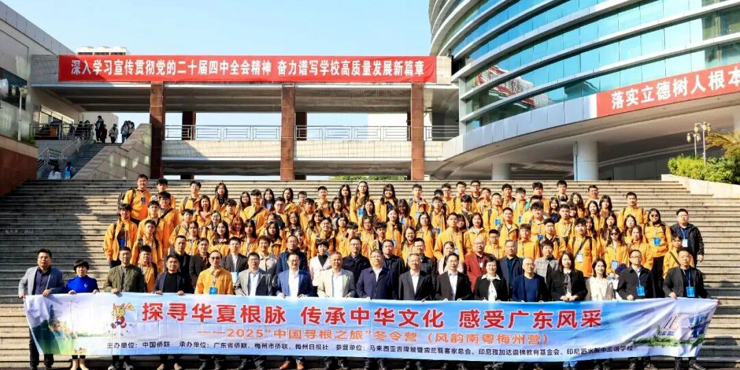 客家网 梅州讯 12月22日,嘉应学院迎来一群特殊的“归乡人”——来自马来西亚、印尼的86名华裔青少年和领队老师齐聚客都梅州,开启为期10天的文化寻根之旅。开营仪式上,二胡独奏《赛马》、授旗仪式等环节点燃了现场氛围,海外新生代与客家故土的情感纽带在此刻紧密相连。