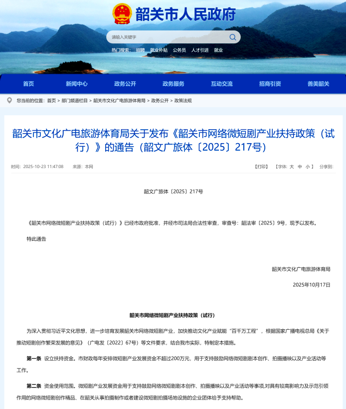 题材创新:青春叙事激活传统文化IP 剧集打破中医题材的厚重感,以“重生逆袭”的青春叙事手法,呈现青年中医刘霍如何将传统医术与产业思维结合,撬动乡村振兴。故事背景设定于1992年粤北山区,既保留年代质感,又呼应当下“百千万工程”对乡土产业活力的呼唤。 产业赋能:韶关打造“短剧友好城市”生态 韶关凭借丹霞山水、围楼古村等资源,已成为微短剧创作的“天然摄影棚”。当地设立每年200万元产业资金,推出《网络微短剧产业扶持政策(试行)》,已成功孵化《救命!是九龄大人》《黄金柰柰李西游记》等多部兼具流量与口碑的特色短剧。《客家药王》的开机,进一步丰富了韶关微短剧矩阵的题材维度。