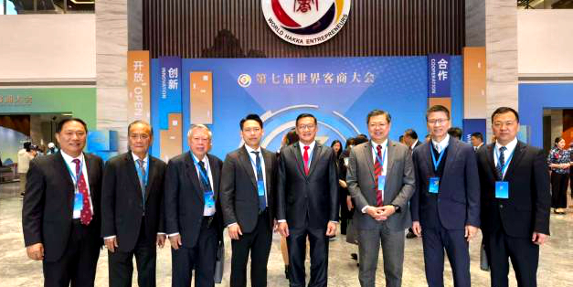 邹寿汉(左三)参加第七届世界客商大会 家风铸魂:"水客"祖父的诚信烙印 “我祖父就是这样的水客。”在“水客”展区的老照片前,邹寿汉指尖轻拂展板,目光穿透时空。他的祖父是晚清民国时期的客家“水客”,往返南洋与梅州,为侨民捎带钱款、家书与物资。 战乱年代,祖父携带的侨汇被海关没收,为兑现对同乡的承诺,他毅然卖掉梅城店铺还清欠款,用行动立下诚信标杆。“祖父的故事教会我,做人经商首重诚信。”这份家风让邹寿汉受益终身,早年靠赊账起步做电池生意,凭勤恳守信将工厂做成马来西亚产量领先企业并成功上市。 归乡牵情:四十年架起寻根通路 生于马来西亚的邹寿汉,从小听着故乡故事长大,客家话与客家习俗是刻入骨髓的文化底色。改革开放后,40岁的他历经两天颠簸,辗转飞机、长途汽车、轮渡与乡间小巴,终于踏上梅县程江镇的故土。 在祖父故居的老屋里,他抚摸斑驳族谱,与宗亲相拥而泣;在松口古镇的码头,他真切体会到先辈下南洋的艰辛。如今,他每年组织百余名马来西亚乡亲集体返乡,“两天路程”已缩为“朝发夕至”,行程也从单纯寻根拓展到文化交流、乡村振兴考察。作为第七届世界客商大会发起人之一,他见证着盛会从艰难起步到成为跨国交流重要平台。 守文铸基:倾尽心力护华文薪火 “我的电池能给汽车续航,而华文教育能给民族的未来续航。”古稀之年卖掉工厂后,邹寿汉全心投入华文教育事业。他的母校尊孔独立中学,是马来西亚拥有129年历史的华文教育标杆。 从20世纪90年代至今,他牵头筹集6000万马币为新纪元大学学院购置教学楼,推动马来西亚构建起从幼儿园到大学的完整华文教育体系。在他与侨胞的努力下,华文独立中学统考获中国认可,学生可免试进入清北等高校深造,他还推动马来西亚汉剧学员赴梅州交流演出,让“南国牡丹”在南洋绽放。