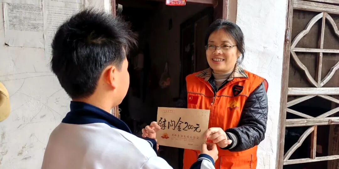 守望故事现场 在文福镇重病学生小杨家中,志愿者发现其瘫痪母亲脑部新增肿瘤。徐瑞灵部长为母女穿上冬袜时,母亲泪水滚落:"你们带来了希望"。大三学生小彭的租住屋内,这个靠勤工俭学维持生活的预备党员郑重鞠躬:"会把温暖传递下去"——两个孩子不约而同的感恩宣言,成为客家精神传承的生动注脚。