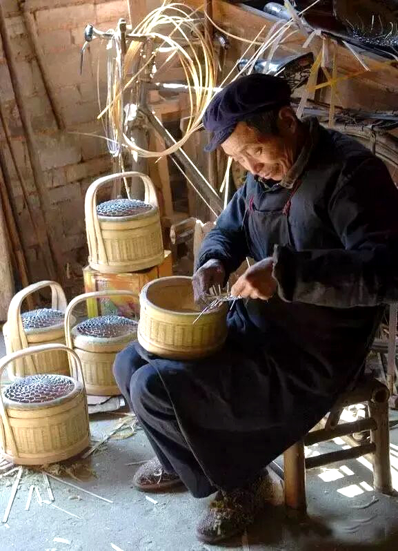 形制工艺:竹陶相融的民间巧思 客家火笼堪称“实用与美感兼具”的民间手工艺品,主要分为两类,各有特色: - 篾火笼:以细腻竹篾编织成圆柱形外壳,内胆嵌入陶钵盛木炭,配拱桥状提柄和铁丝圆盖,其中长汀馆前、连城四堡的制品以工艺精细、牢固耐用著称; - 石火笼:又称石垵,由陶土烧制而成,讲究者会用米汤裱布、再糊毛边纸,既保温防烫,又美观结实。 层层环绕的细篾条、严丝合缝的结构,每一处都彰显着客家篾匠的耐心与巧思,让火笼成为寒冬里兼具实用性与观赏性的“宝物”。