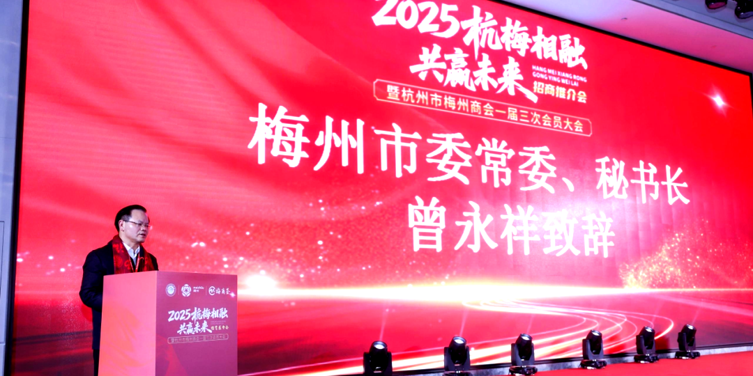 客家网 杭州讯 12月27日,2025“杭梅相融,共赢未来”梅州(杭州)招商推介会在杭州英冠索菲特酒店成功举办。梅州市委常委、秘书长曾永祥带队,与浙江企业、商会代表共话产业协作,推动梅州苏区与长三角经济圈深度对接。