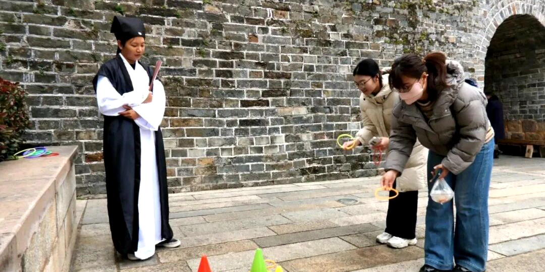 NPC互动+多元玩法,覆盖全年龄层 活动配备10余名戏曲扮相NPC,通过猜谜、投壶等传统游戏与游客实时互动。玩法融合飞花令、鲁班锁等雅趣,以及APP扫码积分、实时榜单PK等科技手段,兼顾传统与现代需求。游客江桢烨表示:“在卧龙书院投壶、解谜时,不知不觉就深入了解了汀州文化。”