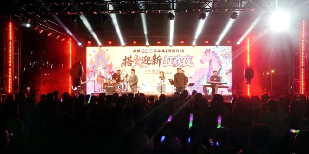 声光盛宴:跨年音乐会引爆全民狂欢 晚间舞台迎来客家语摇滚乐队"檐街三友",改编自客家山歌的《月光光》融入电子乐元素,引发全场大合唱。随后登场的非遗木偶戏《郭子仪拜寿》采用投影技术,让传统戏偶在巨型幕布上演绎科幻剧情,年轻观众举起手机录制短视频。
