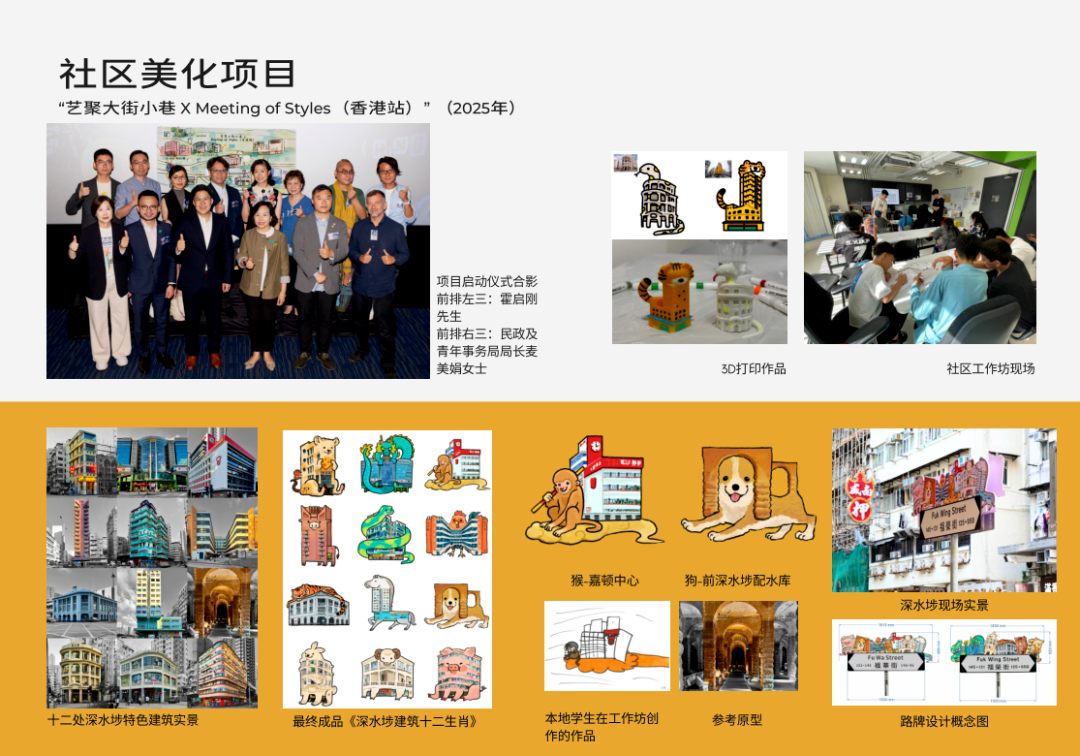 2.数绘生肖 将十二生肖与深水埗建筑结合,通过3D打印技术制成公共艺术装置《深水埗建筑十二生肖》,如“嘉顿中心”对应猴年符号,赋予民俗符号在地性表达。