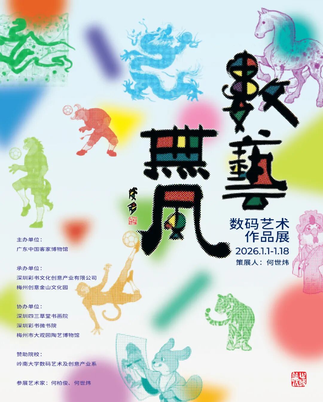 客家网 梅州讯 当传统客家文化遇见数字媒介,会碰撞出怎样的火花?2026年元旦,中国客家博物馆推出首个以数码艺术为主题的专题展览“数艺无风”,通过iPad绘画、3D打印、动态投影等数字技术,重构客家山水、生肖符号与家族文脉,为观众开启一场跨越时空的对话。