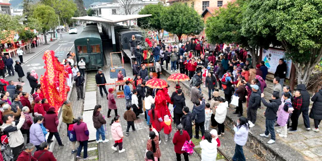 非遗活化:婚嫁“六礼”搬进现实 活动在园村森林小火车站前启动,理事人现场讲解纳采、问名、纳吉等客家婚俗礼仪。游客身着客家传统服饰,随新郎登上红绸装饰的小火车,开启接亲之旅。