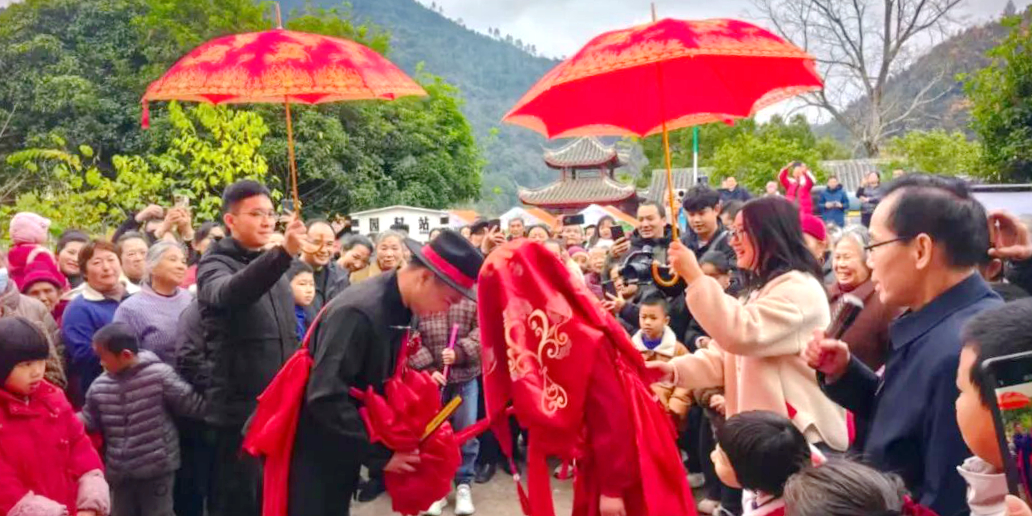 客家网 上犹讯 2026年元旦,赣州市上犹县梅水乡园村村以一场别开生面的“非遗·客家婚嫁”沉浸式文化旅游活动,为游客呈现了一场传统与创新交融的文化盛宴。