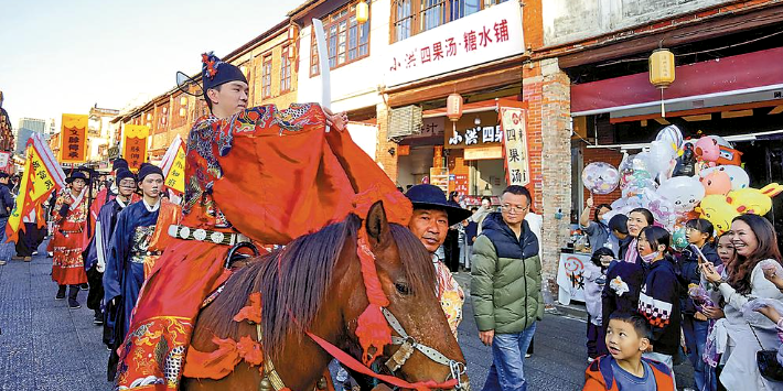 客家网 漳州讯 近日,福建漳州古城以一场别开生面的“上任青云路”沉浸式巡游活动,为新年注入传统文化活力。这场活动通过还原明代科举礼仪,让游客亲历古代士子的荣光之路,凸显了闽南地区深厚的文化底蕴。 当鸣锣七响、官轿起驾,五名“新科进士”在漳州知府的引领下缓步巡游,千年古城瞬间穿越回明代。这不仅是一场视觉盛宴,更是一次对中华礼制文化的生动诠释,吸引众多游客驻足参与。