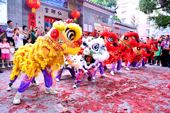 陈惠敏参加长湴村陈氏大宗祠重建10周年庆典 五、民俗薪火世代相传 除独特“仙师诞”外,每年正月初九“添丁上灯”仪式尤为隆重,新丁按族谱辈分取名;年初三“送穷鬼”则以扫除晦气迎新福,这些习俗成为客家生命礼俗的活态展演。