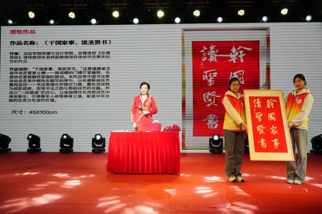 爱心义卖:非遗传递青春温暖 在“龙腾青young·闪耀岩城”2026龙岩青年迎新晚会的非遗爱心义卖环节,“岩青夜校”教师的原创作品与8件学员教学成果作品悉数拍出,所得款项全部用于公益事业。毛线钩织的《花间的月光》玫瑰毯软糯温暖,扎染装饰画《湖山揽月》意境悠远,这些承载匠心的非遗作品,让爱心与文化一同传递。