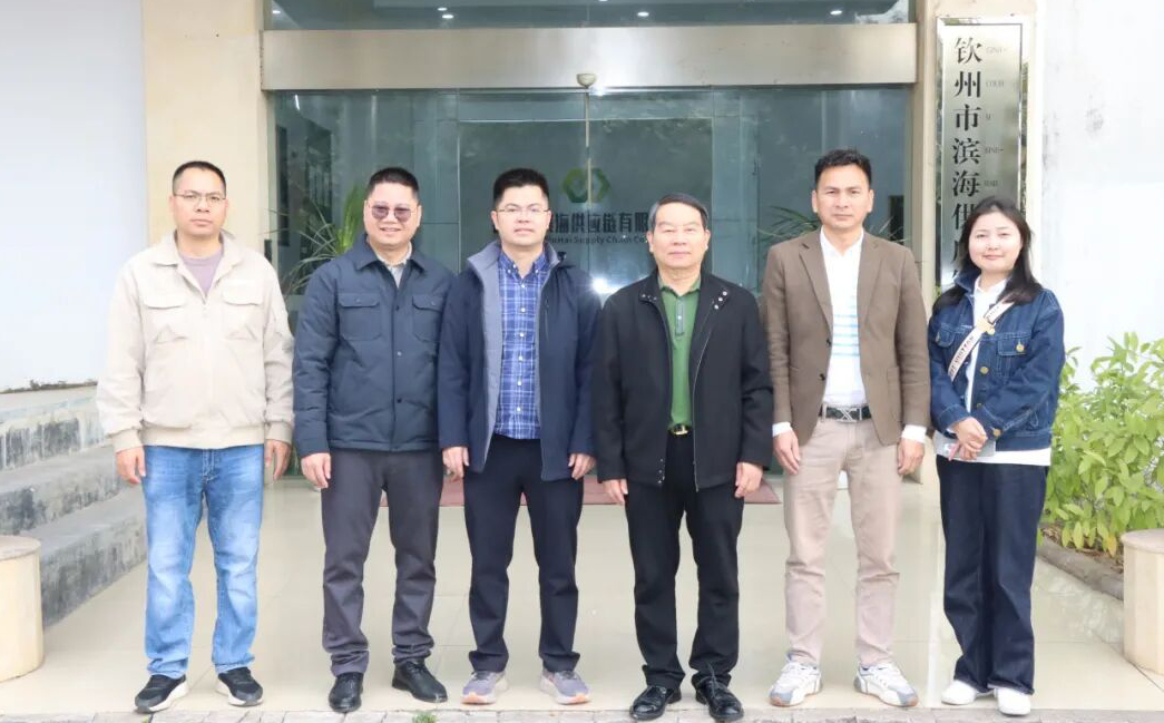 实地走访:深化合作探新机 1月4日,肖志钢一行走访副会长周彬龙的钦州市滨海供应链有限公司,考察全自动化食材配送车间,探讨供应链升级路径。随后代表团抵达研究会新址“家家靓画廊”,黄正春会长介绍艺术空间与文化定位的融合思路。肖志钢肯定画廊与研究会宗旨的高度契合,称其“为客家文化交流提供了鲜活载体”。