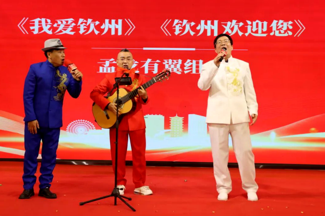 文化展演:乡土情怀焕新彩 晚会文艺环节亮点纷呈。《客家农具秀》将蓑衣、耘田耙等农耕工具搬上T台,以时尚形式演绎客家农耕文明;客家小品与歌曲《我爱钦州》则通过乡音乡情展现文化认同。抽奖环节穿插其中,研究会准备了客家特色礼盒、书画作品等礼品,烘托出浓厚的联谊氛围。
