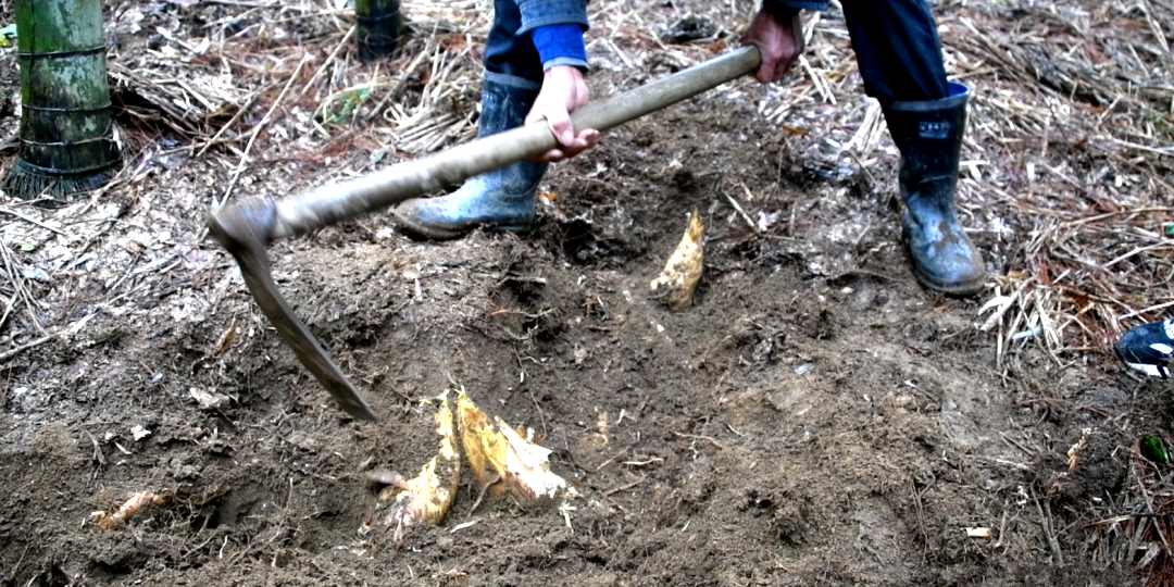 挖笋秘籍:技术、经验与运气的较量 挖冬笋是门技术活。冬笋依靠地下根状茎繁衍,藏匿极深,需通过“三看”诀窍——看山、看竹、看鞭,判断其有无、深浅和远近。经验丰富的挖笋人能通过竹枝颜色、土壤裂纹精准定位,而新手往往“笋在脚下却浑然不知”。挖笋时需轻掘慢取,待见到笋根后以巧劲撬出,确保冬笋完整鲜嫩。