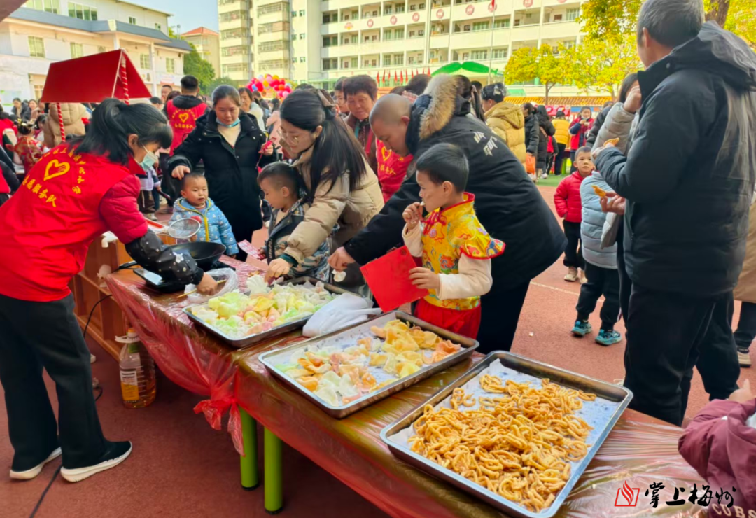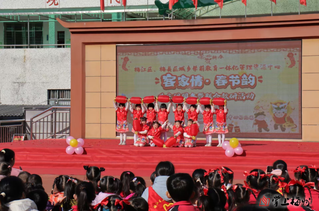 开场:舞狮点睛点燃文化热情 活动伊始,铿锵有力的舞龙舞狮表演瞬间引爆全场。梅江区教育局一级主任科员张志在致辞中强调:“要让客家文化如春雨润物,渗入幼儿日常教育。”三角镇中心小学校长李雪凤则呼吁家校联动,“把围龙屋里的歌谣、灶头边的年味,化作孩子生命的底色。” 童趣展演:生肖福袋传递新春祝福 十二生肖萌娃手提福袋穿梭人群,大班幼儿演绎《过年啦》《瑞雪兆丰年》等节目,稚嫩歌声搭配客家元素服饰,展现童真与文化融合的巧思。一名家长感叹:“孩子回家竟用客家话拜年,这种鲜活教育胜过千言万语。” 游园研学:投壶猜谜舌尖品乡愁 游园环节设置“巧猜灯谜”“投壶纳福”“客家方言趣探”等互动游戏,舞龙队穿行助兴。年味体验区更成焦点——孩子们手持集章卡,揉米粉制发粄粄、串冰糖葫芦,在亲手实践中理解客家饮食智慧。