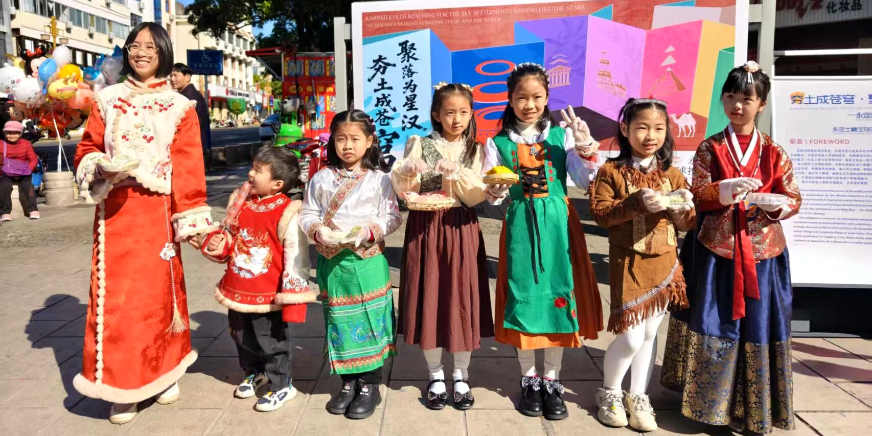 跨越山海的文化对话 活动伊始,永定土楼推介展览就吸引了众多居民驻足观看。展览将永定土楼与秘鲁马丘比丘、埃及金字塔、希腊帕特农神庙等世界遗产并列展示,呈现不同文明背景下人类居住智慧的共鸣。