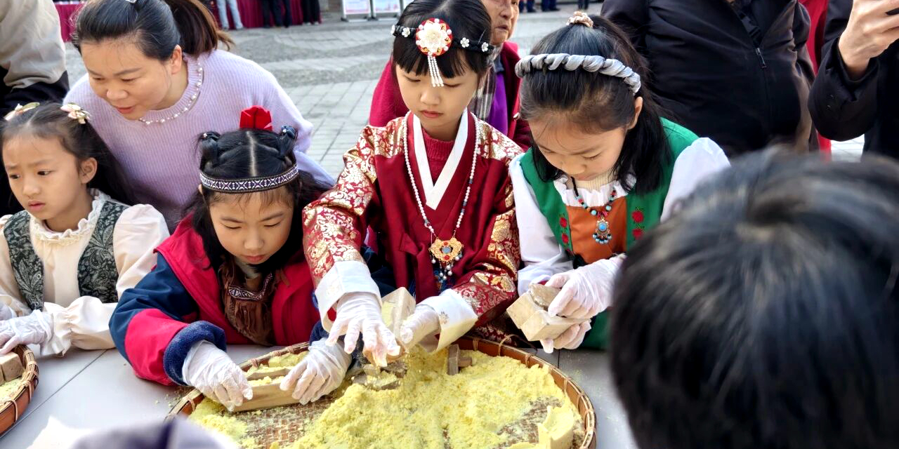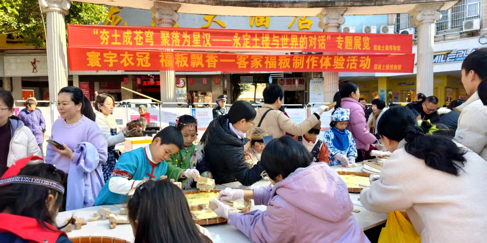 客家网 福建讯 “夯土成苍穹,聚落为星汉”——1月10日上午,福建土楼博物馆携“永定土楼与世界对话”展览走进南门商贸广场,同时举办客家福粄粄制作体验活动。来自各地的客家少年身着多彩民族服饰,亲手制作承载吉祥祝福的福粄粄,让土楼文化香飘世界。