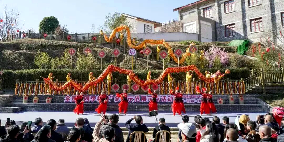 四季篇章,茶韵流淌舞台 演出巧妙围绕春夏秋冬四季展开:《春·茶芽初绽》以情景表演再现采茶序幕,《夏·茶风送凉》用鱼灯舞演绎茶园清凉,《秋·茶香满仓》以农具秀展现丰收喜悦,《冬·茶暖岁安》借客家山歌传递岁末温情。客家话朗诵、擂茶情景表演等非遗元素穿插其间,全景勾勒桃溪茶乡的农耕文明与人文底蕴。
