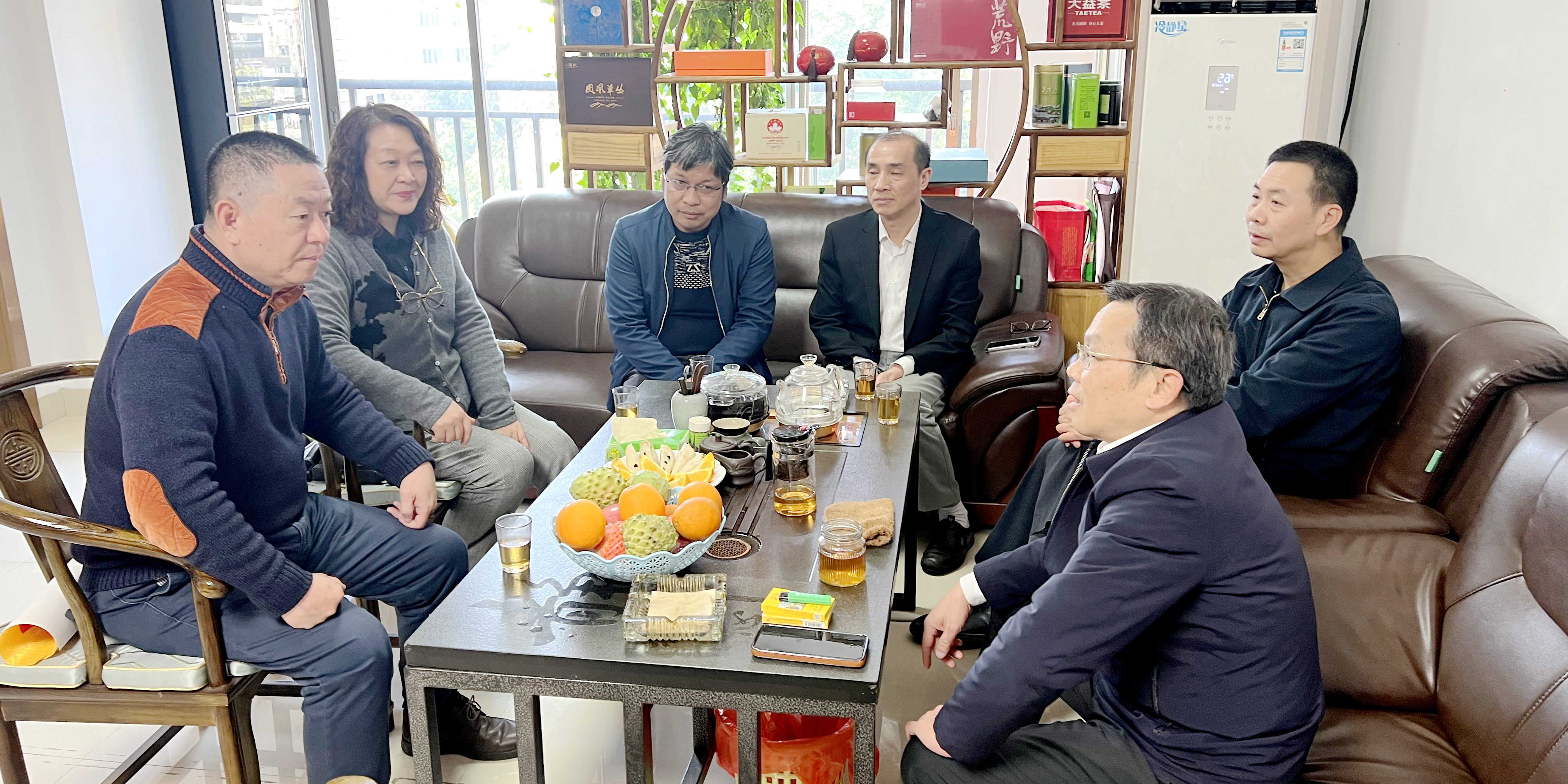 客家网 韶关讯 2026 年 1 月 14 日下午,海南省客属联合会会长颜宪智、执行会长崔俊丽一行莅临韶关市客家联谊会,与该会会长谢祥腾、副会长罗洪伟及副会长兼秘书长何运坚等核心成员齐聚一堂,以乡音为纽带,畅叙桑梓情谊,共商客家文化传承与发展大计。
