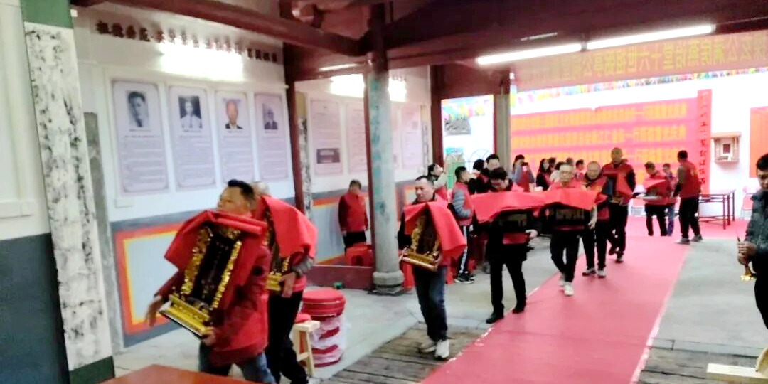 随后的扛舆巡游环节成为全场焦点,承载着徐氏先祖牌位的彩舆,在宗亲队伍的簇拥下穿行村落,沿途村民焚香祈福,锣鼓声、鞭炮声此起彼伏,再现客家 “敬祖睦邻” 的民俗传统。