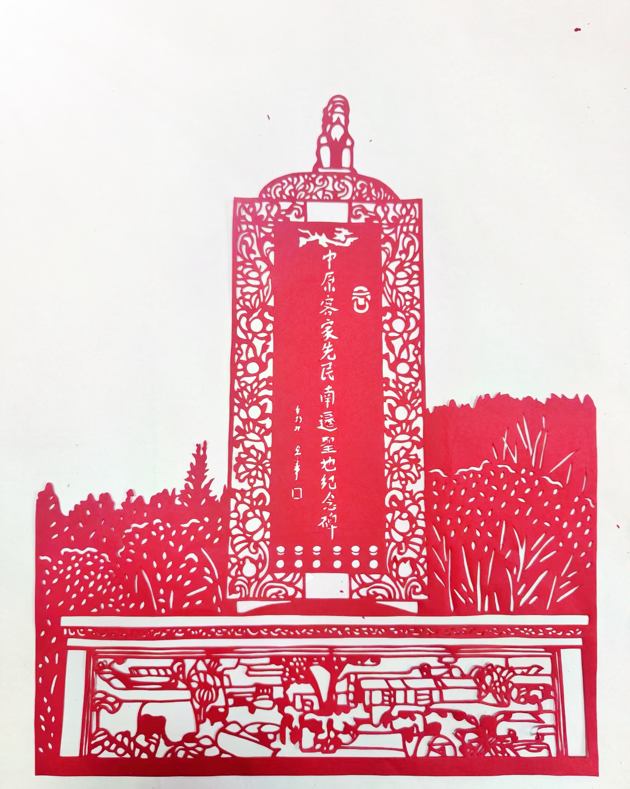一张红纸,一把刻刀,勾勒出客家先民南迁的壮阔史诗;方寸之间,红白交错,凝结着祖根地与全球客属的血脉深情。《中原客家先民南迁圣地纪念碑》剪纸作品,正是客家文化工作者牛崇娇以传统技艺为桥,向客家祖根与迁徙精神致敬的匠心之作。 作品原型:祖根地标里的迁徙记忆 这幅剪纸的核心原型,是位于河南偃师的“中原客家先民南迁圣地纪念碑”——这里是客家先民南迁的重要出发地,承载着“根在河洛”的集体乡愁,更是全球客属寻根问祖的精神坐标。 创作者牛崇娇以纪念碑为灵感源泉,没有简单复刻建筑形态,而是将其与客家文化内核深度绑定,让冰冷的碑石在剪纸艺术中焕发温暖的人文气息,成为串联过去与当下、祖根与侨胞的文化符号。 匠心设计:一剪一刻藏尽南北文脉 作品的精妙之处,在于每一处细节都暗藏文化密码: - 碑身核心:“中原客家先民南迁圣地纪念碑”十三个字被精准镌刻,字体庄重规整,既是对纪念碑的致敬,也让核心信息一目了然; - 装饰纹样:两侧祥云和牡丹花纹巧妙融合中原的雄浑大气与岭南的灵动细腻,暗合客家先民从河洛南迁岭南的历史轨迹,象征南北文化的交融共生; - 迁徙浮雕:底座浓缩还原了纪念碑上的南迁场景,扶老携幼、筚路蓝缕的先民形象在红纸上跃然眼前,寥寥数刀便勾勒出客家人坚韧不拔、抱团前行的精神特质。 创作者以“红纸为媒、刻刀为笔”,用民间技艺的温度,让严肃的历史地标变得可感可触,让迁徙故事在指尖流转。 精神内核:剪纸背后的客魂传承 这幅作品远非一次简单的技艺展示,更是一场跨越时空的精神对话。从河洛到五洲,客家人带着“根在河洛”的信念,历经千难万险仍坚守文化基因;而纪念碑与剪纸作品,正是这种信念的双重载体。 创作者希望通过鲜亮的红纸,让客家乡亲读懂先辈的勇气与担当,让文化爱好者感知客家文化的深厚底蕴,更让“根在河洛”的乡愁,在传统技艺的传承中永不褪色。 【客家网观察】 剪纸作为中国传统民间艺术,以其简洁灵动的表达承载着文化记忆;而客家文化的核心,正是对祖根的眷恋与对精神的坚守。这幅作品的珍贵之处,在于将“祖根地标”与“传统技艺”完美结合,让抽象的客家精神变得具象可感。 在全球化背景下,这样的匠心创作,既是对客家文化的活态传承,也是对“文化寻根”的生动诠释——它证明传统技艺从未过时,反而能成为连接祖根与侨胞、过去与未来的重要桥梁,让客家文化在指尖代代相传、生生不息。 互动话题 你还知道哪些以客家文化为主题的传统技艺作品?如果用剪纸表现客家文化,你想看到哪些场景(如围龙屋、客家山歌、客家美食)?欢迎在评论区分享你的想法! |