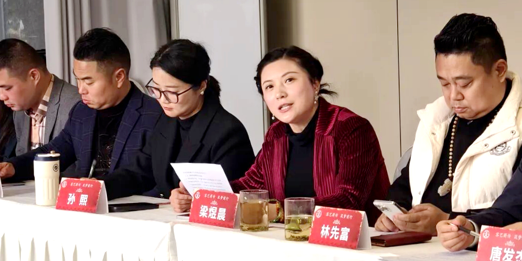 跨越式成长:从10人女团到16人综合性艺术团队 汇报会伊始,主持人孙熙致开场辞,逐一介绍到场嘉宾并致谢,阐明会议对艺术团总结得失、谋划未来的重要意义。随后,客家红艺术团负责人梁煜晨作2025年度工作总结及2026年度工作计划汇报。