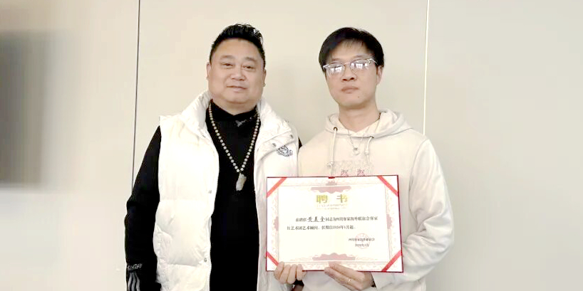 表彰结束后,聘书颁发仪式顺利举行。唐发杰为廖彬帆颁发聘书,聘任其为舞蹈导师;林先富为黄美全颁发聘书,聘任其为艺术顾问,为客家红团队艺术发展注入专业力量。此外,林先富、唐发杰、郑勇共同为张其林、王坤、李胜竹、李强学、吴修明、彭辉、袁军、刘世友颁发“鼎力支持贡献奖”,致敬他们对客家文化传承及艺术团发展的鼎力相助。