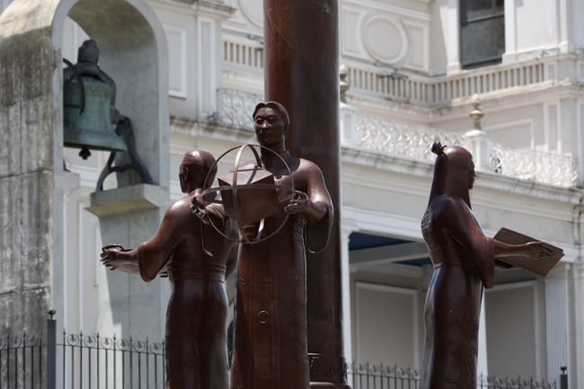 在世界各个角落的街巷与山水间,散落着一个个独特的华人文化地标。它们或是庄严肃穆的纪念碑,或是古韵悠悠的老街,或是精巧雅致的亭台,每一处都藏着华人先辈漂洋过海、落地生根的岁月印记,更承载着守护中华文化根魂的使命。 哥斯达黎加圣何塞:百年纪念碑,圆侨胞寻根梦 在圣何塞市中心的中国街,一座高7米的“共创辉煌”纪念碑巍然矗立,铜柱为心,三尊华人铜像环立,分别象征文化、科技、商业领域的侨胞贡献。这是2023年,为纪念第一批华人抵达哥斯达黎加168周年而建,圆了几代华人的心愿。