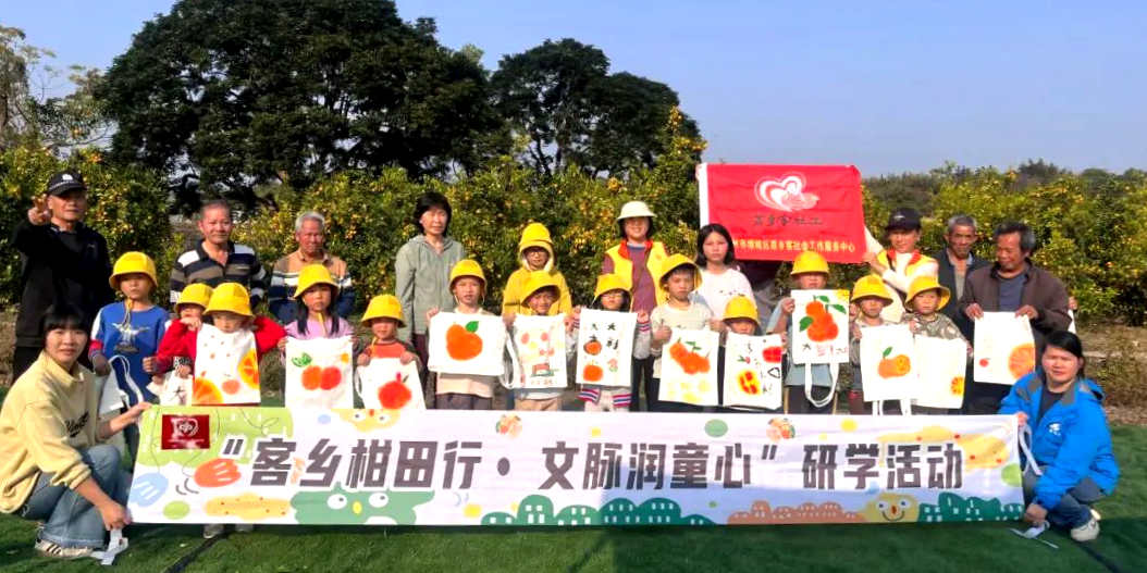 客家网 广州讯 2026年1月17日,广州市增城区派潭镇大田围村的雾柑种植地里热闹非凡。由派潭社区居民委员会联合多家社工与未保机构共同主办的“客乡柑田行・文脉润童心”公益研学活动在此开展,15组亲子家庭与初老志愿者携手,在柑田劳作与文化探索中溯源客家根脉。