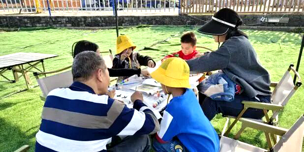创意实践:环保袋上绘客家风华 “我和长辈的雾柑记忆”环保袋绘画活动成为文化传承的生动载体。每组参与者领到空白环保袋、颜料和工具,在雾柑、田园风光模板的启发下开启创作。 初老志愿者或勾勒客家特色纹样,或用客家话写下“桔仔”等特色字样,或指导孩子描绘柑田劳作场景;孩子们用鲜艳色彩填充画面,将对雾柑与客家文化的理解融入创作。社工巡回指导、鼓励交流,老少携手将空白环保袋变成承载客家元素、满含童趣温情的独特作品,既传递环保理念,更让文化扎根童心。