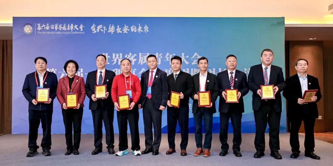 会议现场,世界客属青年大会创会主席曾智明为名誉主席陈梓红、会长赖志光等主席团主席授牌。庄重的授牌仪式不仅明确了新一届主席团的责任与使命,更凝聚了全球客属青年同心同德、携手前行的共识,为后续系列活动的有序开展奠定了坚实基础。