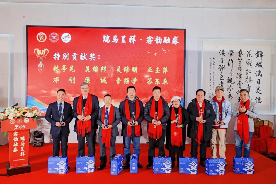 表彰授牌:致敬担当,榜样引领聚合力 为树立榜样、激励奋进,活动现场举行隆重的颁奖授牌仪式。四川客家海外联谊会会长林先富宣读联合表彰决定,分别授予林亭先、吴修明等 8 人 “2025 年度特别贡献奖”,邱伦阔、梁煜晨等 8 人 “文化传承奖”,春上早茶业集团等 20 家企业 “优秀企业奖”。