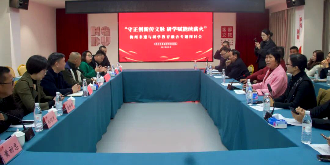 客家网 梅州讯 2026 年 2 月 1 日,“守正创新传文脉 研学赋能续薪火” 梅州非遗与研学教育融合专题座谈会在广东客都文旅有限公司举行。这场凝聚多方智慧的盛会,既是转化文旅专项培训成果的务实之举,更呼应了梅州市 “两会” 筹办首届客家(梅州)非遗大会的政策部署,为客家非遗传承按下 “加速键”。