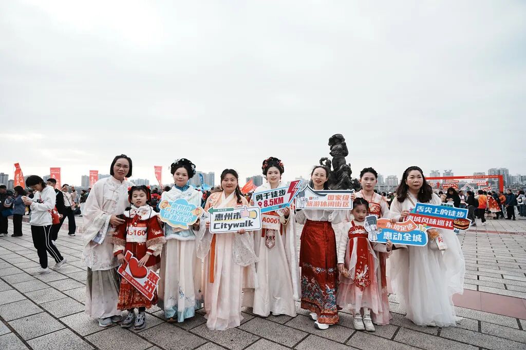 古今交融,汉服华裳映客家古城风韵 清晨9时30分,鸣笛声起,徒步队伍从东江公园正式启程。作为客家四州之一的惠州,老城街巷间的骑楼、府城遗址本就镌刻着客家迁徙与发展的印记,而此次活动中,身着宋制汉服、东坡服饰、传统华服的参与者衣袂轻扬,与客家特色景致相映成趣,二次元创意服饰更让古今文化碰撞出别样火花,勾勒出客家古城与东坡文化对话的流动画卷。
