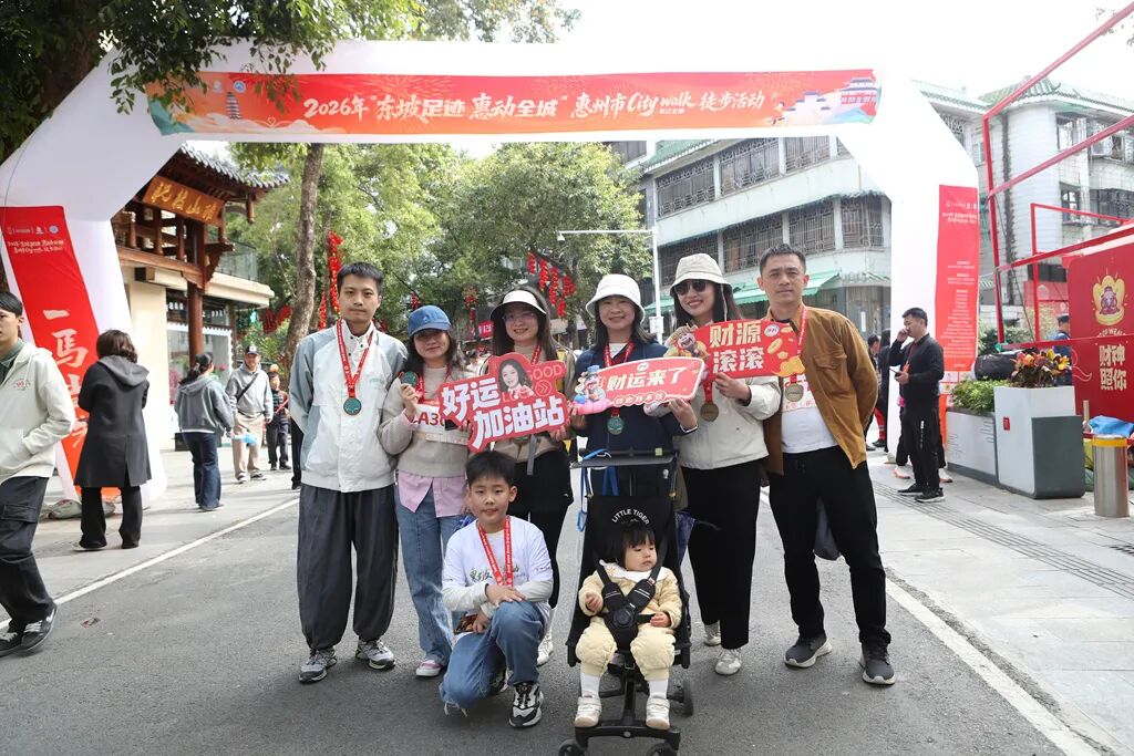 全民同乐,客家温情融新春徒步之旅 此次Citywalk参与门槛亲民,不同年龄、不同身份的市民相聚同行,客家文化中“聚族而居、邻里相融”的温情在活动中尽显。亲子同行的画面随处可见,家长推着婴儿车陪伴孩童缓步前行,五年级学生张培根与妈妈、双胞胎兄弟牵着爱犬抵达终点,萌宠的加入更让徒步之旅满是欢乐;不少市民组团参与,中学教师蒋老师便和同事带着孩子共赴这场文旅之约,在行走中感受惠州迎春氛围,锻炼孩子体能。