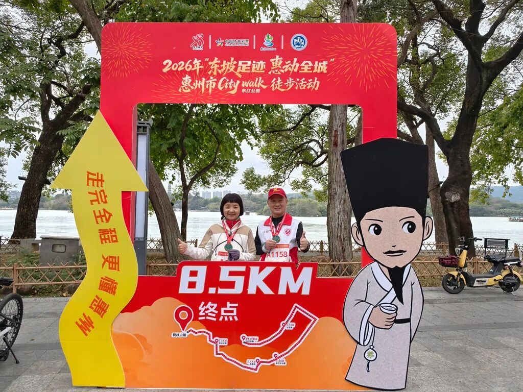 新老惠州人都在活动中收获了别样的文化体验。定居惠州近十年的新惠州人林国森,首次将东坡祠、合江楼、惠州府城遗址等客家与东坡文化地标串联游览,直言“绿道、东江、人文景点融为一体,让人神清气爽”,更让孩子在行走中接触本土文化,种下热爱客家与东坡文脉的种子;土生土长的惠州人张浩完赛后拿到刻有东坡诗意、惠州山水的纪念奖牌,难掩兴奋,“第一次完整沿东坡足迹行走,客家古城的文化体验格外特别”。 远道而来的中央广播电视总台记者、环保志愿者汪永晨,特意推掉北京事务赶赴惠州全程参与,她感慨道:“惠州这场漫步能汇聚数千名市民共同参与,这座客家古城展现出的精气神,正是一座城市的希望与幸福所在。”