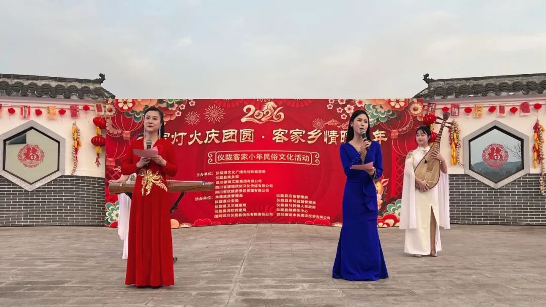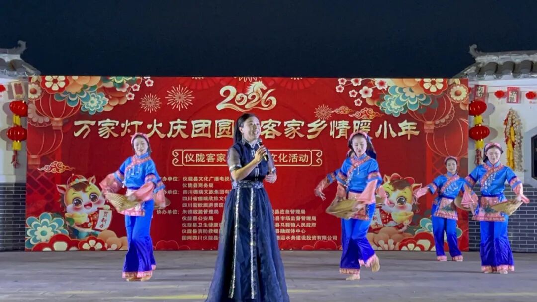 本次活动由仪陇县文广旅局、商务局主办,朱德故居管理局、县公安局等多单位协办,紧扣“红色年味·客家欢歌”核心主题,精心设置辞陈迎新、岁岁团圆、烟火迎春三大板块,既是对客家传统习俗的创造性转化与创新性发展,更是提升县域文化软实力、传承客家精神的生动实践。四川客家海外联谊会副会长兼影视文化传播部部长梁煜晨应邀出席,以普通话+客家话双语主持全场,并现场演唱原创客家歌曲《客家妹》,用乡音联结乡情,让客韵温情满溢现场。