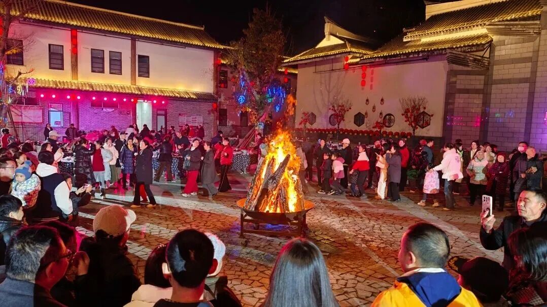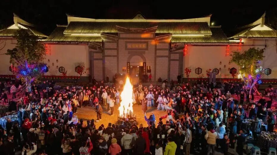 烟火迎春:火把巡山祈愿,篝火烟花燃动团圆夜 活动最庄重、最温暖的环节,当属客家民俗仪式——点火把、巡山、亮堂。夜幕降临,150位客家儿女手举火把,从耕读广场出发,奔赴初心苑、C组团等三个民宿院落及耕读馆主会场,星星点点的火把汇聚成温暖的海洋,“巡山啰”的客家吆喝声响彻园区,巡向四方、照亮山河,这是客家儿女对传统的坚守,更是对美好未来的期盼。