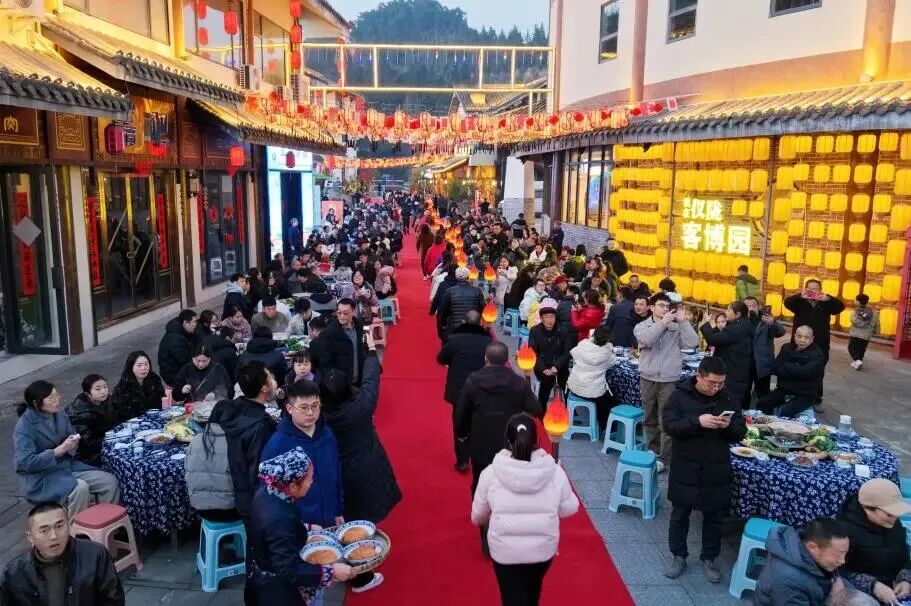 值得一提的是,本次宴席的核心——仪陇客家水席,已成功入选第七批南充市级非物质文化遗产代表性项目。这一传承近三百年的客家饮食文化瑰宝,起源于明清时期,因上菜如流水、菜品多汤水状得名,以“九大碗”为核心,蒸、煮、炖的烹饪方式尽显食材本味,座次、出菜、敬酒的诸多讲究,更是彰显着客家人热情好客、重礼守序的传统美德。上千名客家乡亲围桌而坐,共品非遗美味,共话桑梓乡情,烟火气与团圆味交织,成为仪陇客家小年最温暖的底色。