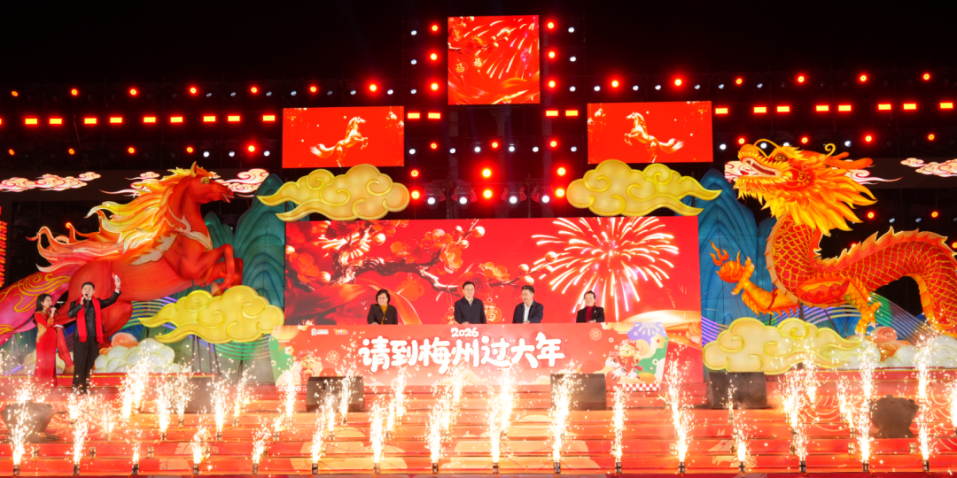 本次启动仪式以“歌舞迎客、火龙献瑞、烟花贺岁”为核心,融合客家传统民俗与现代光影科技,打造了一场沉浸式的新春视听盛宴,也正式拉开了梅州持续至3月3日(元宵节)的新春文旅盛宴序幕,超百场特色活动将让客都年味持续升温。