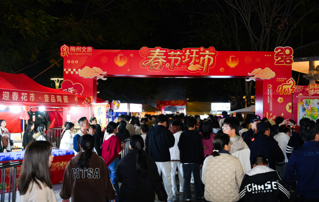 新春活动早知晓,消费补贴享实惠 梅州此次“请到梅州过大年”系列活动将持续至3月3日,院士广场作为主会场,推出了一系列特色活动,精彩不重样: · 1月30日至2月14日,迎春花市持续开放,新春花卉一站式选购; · 1月30日至3月3日,春节圩市每日迎客,客家美食、非遗文创应有尽有; · 2月17日(大年初一)19时45分,国家级非遗“烧火龙”搭配无人机表演,解锁新春新玩法; · 2月18日(大年初二)19时30分,烟花秀、无人机表演再度上演,点亮梅江夜空; · 3月3日(元宵节)晚上,院士广场、嘉应古城将同步举办“客来满月·锦绣团圆”闹元宵活动,舞龙舞狮、非遗巡游、电音嘉年华、烟花秀等多元活动陪市民游客闹元宵。 除主会场外,梅州各县(市、区)也将推出精彩纷呈的县级系列活动,如梅县区“请到中国·松口过大年”活动,将客侨文化与新春年味深度融合,为游客带来别样的客家新年体验。