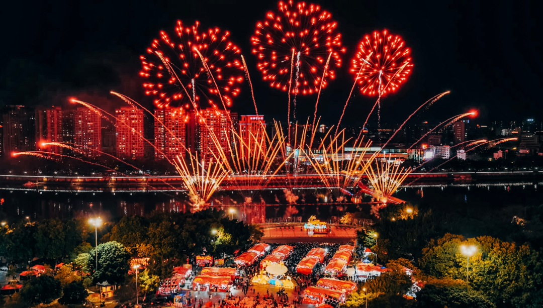 压轴登场的大型烟花秀更是将氛围推向高潮,全省首发的蓝色流星雨、紫气东来、黄金瀑布、蝶舞飞花等创意烟花造型在夜空次第绽放,火树银花凌空飞舞,璀璨的烟花映照出一张张幸福的笑脸,将小年夜的团圆氛围拉满,让观众大饱眼福、意犹未尽。
