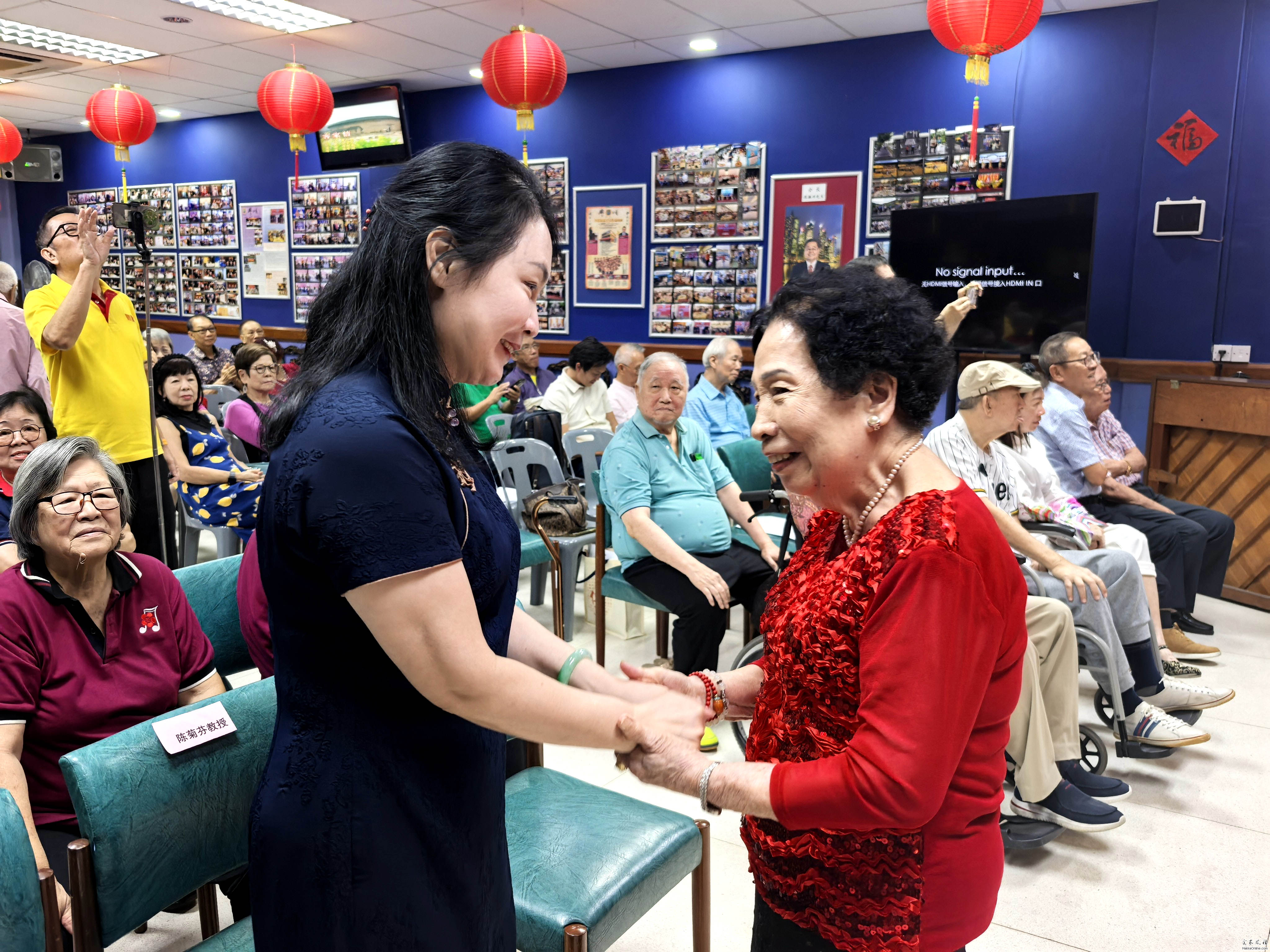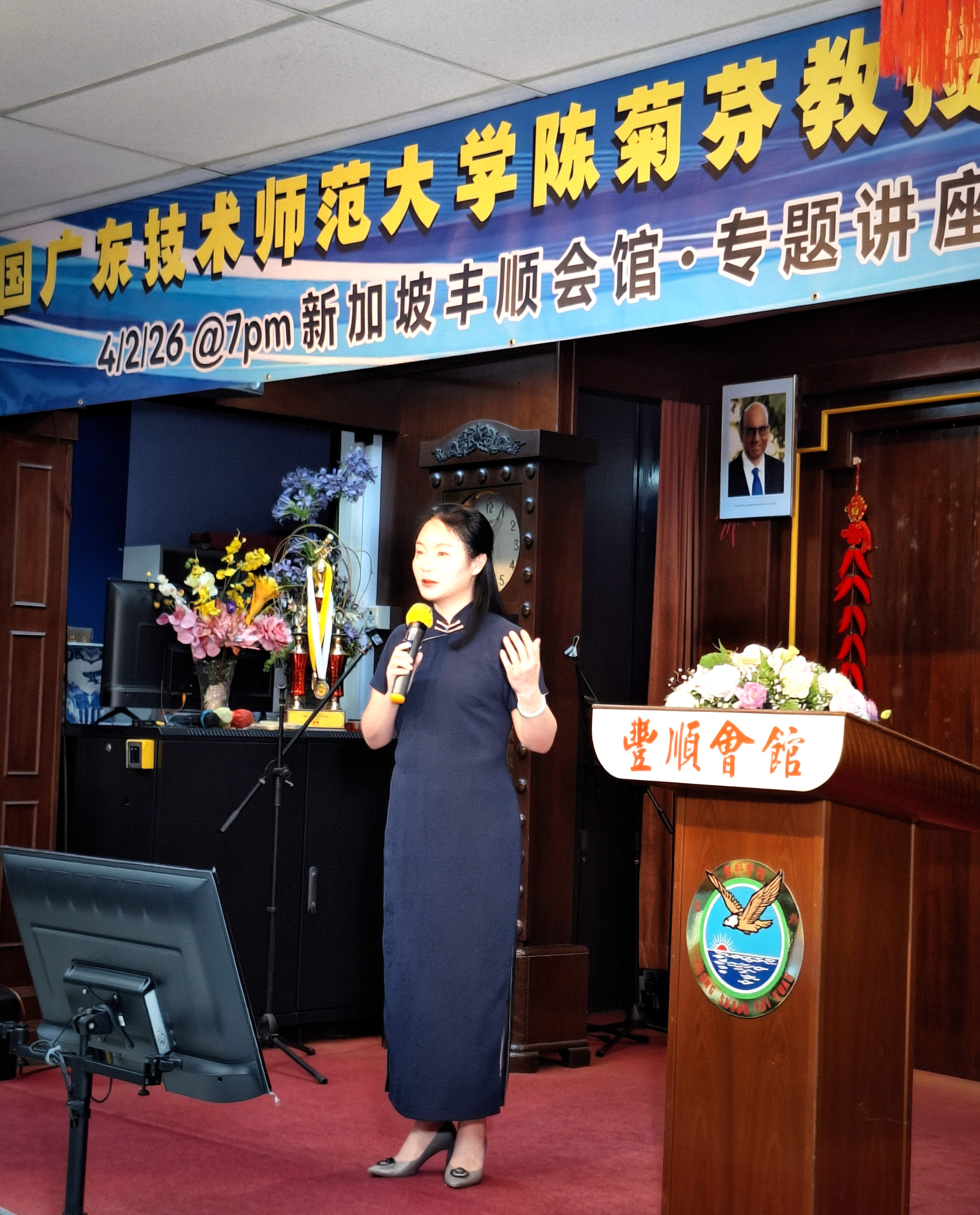 专题开讲,传承创新话乡音 随后,陈菊芬教授带来题为《客家山歌:飘洋过海的乡音、乡情和乡愁》的专题讲座。讲座内容丰富详实、讲解深入浅出,菊子老师不仅系统阐释了客家山歌的文化内涵与艺术价值,还现场示范即兴山歌演唱,清亮婉转的歌声让乡亲们直观感受客家山歌的音乐性与抒情力量。她特别鼓励海外乡亲结合南洋生活特色,创作自然流畅、富有地域风情的客家山歌作品,让客家山歌在海外落地生根。 讲座中,菊子老师强调,客家山歌从来都不只是简单的音符组合,更是客家人的文化基因与身份认同的载体,唯有坚持**传承与创新并行**,才能让这门古老的艺术在新加坡乃至海外生生不息。现场教唱环节更是将氛围推向高潮,新创客家山歌《寻梦客家》在宋唐老师的钢琴伴奏下缓缓响起,菊子老师逐句教唱,乡亲们轻声跟和,旋律优美、情感真挚,歌声里的客家情,让在场之人无不动容,沉浸式的音乐体验成为大家心中难忘的记忆。 菊子老师还分享了自己正在推进的客家童谣收集工作,她认为,童谣朗朗上口、易于传唱,是客家山歌传承的重要载体,让童谣走进孩子的生活,才能让客家山歌的种子在下一代心中生根发芽,实现真正的代代相传。