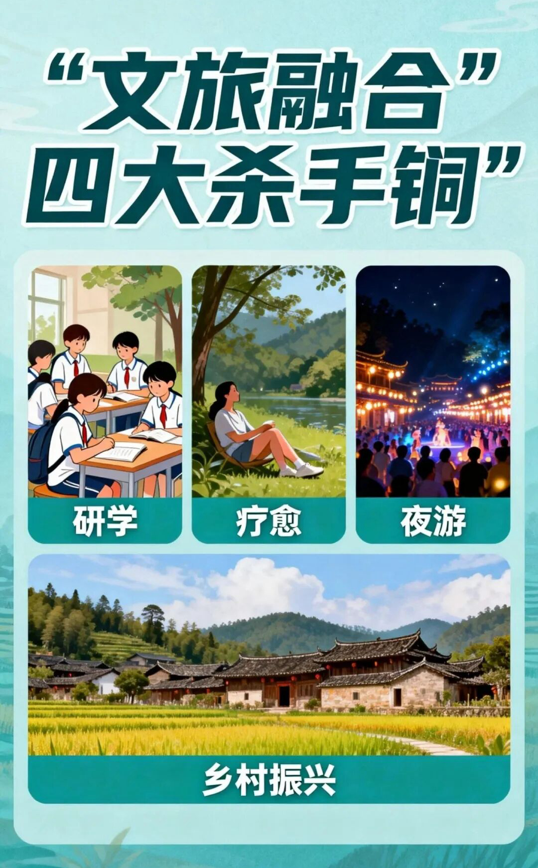 当下文旅行业正从“资源依赖”向“需求创造”深度转型,研学、疗愈、夜游、乡村振兴成为被市场验证的文旅融合“四大杀手锏”。客家地区坐拥丰富的文化与生态资源,四大业态的融合发展,正为客家文旅注入全新活力,成为撬动客家文化传承与乡村发展的重要支点。 文旅融合的核心是对人的需求的深度洞察,研学、疗愈、夜游、乡村振兴四大业态分别对应着成长、情绪、体验、价值四大核心需求,且各自形成成熟的商业逻辑与运营模式。在客家地区,这四大业态更是与客家文化、客家乡村风貌深度结合,催生出独具客家特色的文旅融合新形式,让客家文化在新时代实现活态传承,也让客家乡村迎来发展新机遇。