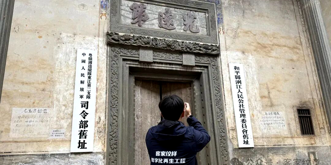 紧急补位:与时间赛跑的数字化采集 “木头会烂,石刻会风化,更可怕的是,人心在散。”带着这样的紧迫感,赣州市客家文化遗产研究院的年轻采集技术员们,扛起相机、扫描仪、无人机,一次次走进颓圮的客家古屋,开启了与时间赛跑的纹样采集工作。 他们的足迹遍布赣南的村落古建,300多天寻访72个村落、141座古建,将818件服饰、2016件纹样纳入数字档案。每一次采集都力求细致,不仅扫描图案本身,更记录纹样在建筑中的位置、环境和使用场景,为每件纹样建立包含历史背景、制作工艺、文化含义的完整档案,甚至抢时间记录老匠人的口述史,留住纹样背后的文化脉络。