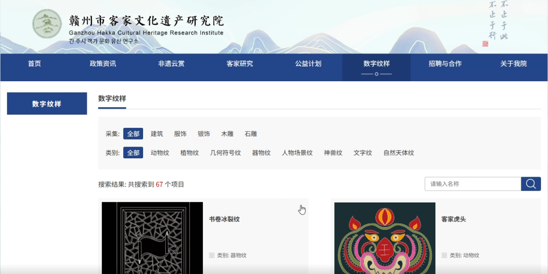 这场合作的核心,是打造“采集—建库—激活—共生”的完整链条。目前,全球首个客家纹样数据库已初步建成,涵盖建筑、银饰、服饰等类别,包含动物纹、植物纹、几何符号纹等十余种类型,数据库对非营利学术研究全面开放,所有历史资料、数字纹样均可公开查询和下载,让客家文化成为可共享的学术资源。
