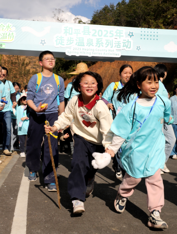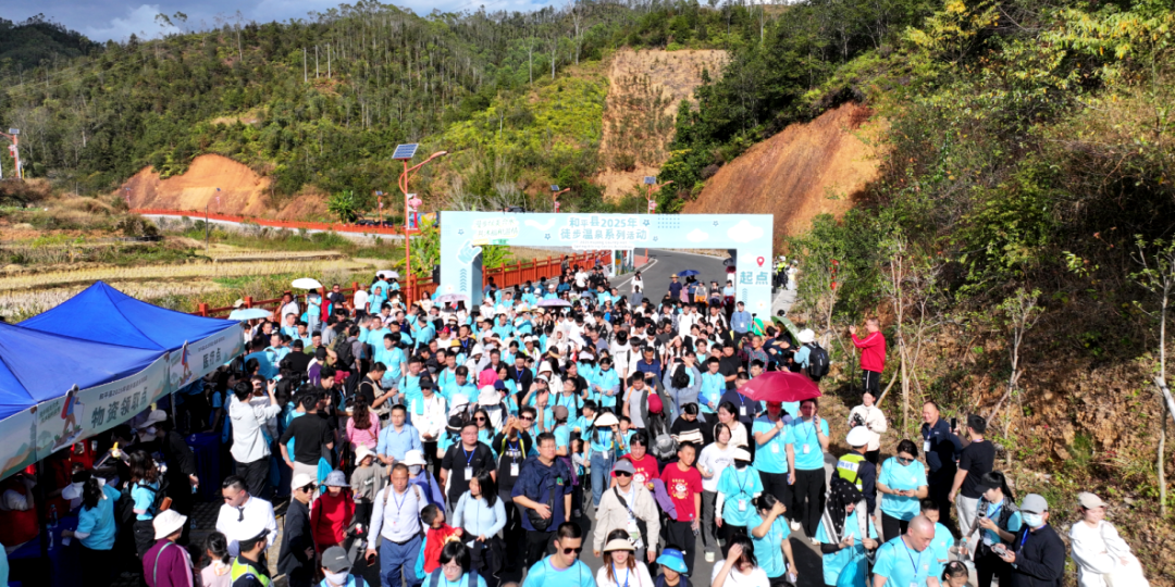 客家网 河源讯 12月20日,“漫步绿美合水·共沐福和温情”2025年徒步温泉系列活动在广东河源市和平县拉开帷幕。来自深圳、河源等地上千名行走爱好者齐聚彰洞村,用脚步丈量客家古村的生态肌理,亲身感受“百千万工程”为乡村带来的焕新气象。