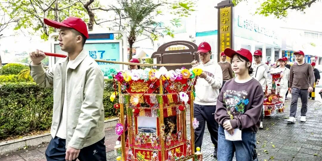 巡游全城,花灯从祖屋走向公共空间 上午九时,由兴宁20个镇街选送的精美花灯组成巡游队伍,从旅游集散中心出发,绕明珠文化广场巡游。这些花灯均是此前花灯评选活动的获奖作品,在设计上融入了各镇村的特色文化资源,生动展现了"百千万工程"的实施成果。巡游所到之处,群众夹道围观、争相拍照。这场公共巡游,让原本深植于家族祖屋的上灯仪式,走向更广阔的公共空间,成为一次全民共享的文化盛宴。