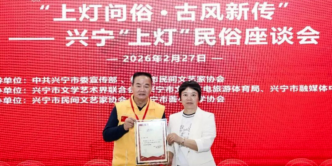 学术赋能,顶尖专家把脉非遗活化 随后的座谈会上,兴宁市文化广电旅游体育局局长邹燕锋系统介绍了兴宁"上灯"习俗从北宋传说、明清鼎盛到当代传承的整体脉络。多位国内顶尖民俗学者发表了真知灼见: 中国民间文艺家协会副主席韦苏文指出,兴宁上灯的核心在于"以灯喻丁",寄托着客家人对生命延续、家族昌盛的祈愿。他建议,上灯习俗需在载体、场景、内涵与参与方式上全面适配当代生活,将其纳入市级文化发展规划,并围绕"祈福、团聚、传承"的精神内核,让仪式从家族活动变为全民参与的文化活动。 华南理工大学教授储冬爱提出了"礼俗-圣火-遗产"的三层解读框架,认为上灯应从宗族仪式,升维到凝聚文化认同、传递家国情怀的中华优秀传统文化叙事。她强调,非遗的创造性转化必须回到审美层面,让民众自发地享受这场文化盛宴。 广东省民间文艺家协会秘书长黄舒媞则提出了五点具体建议:守正固本、扶持传承梯队、规范民俗实践、品牌化运营打造IP、推动价值升维,让民间文艺更好地服务人民群众。