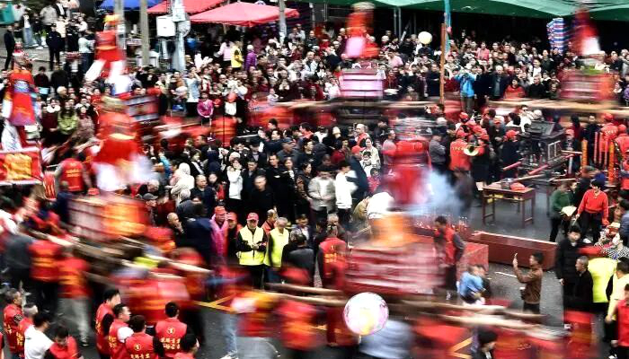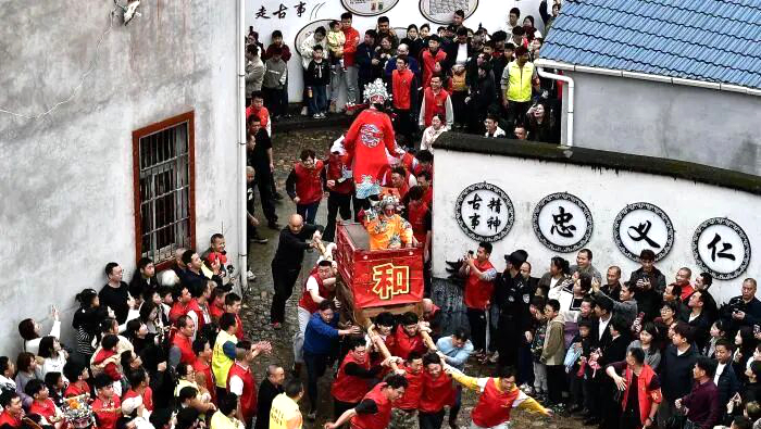 分工协作,狂奔尽显客家精神 抬古事是一场考验协作的集体竞技,每棚古事都有明确分工:“杠头”拉、“杠尾”推控方向,两侧专人保平衡,其余村民合力抬棚。众人抬着古事棚在村庄狂奔,默契配合、奋勇争先,生动诠释了客家人团结拼搏、力争上游的精神内核,也复刻了先祖迁徙的奋进历程。![村民们抬着“古事”在村庄里狂奔]